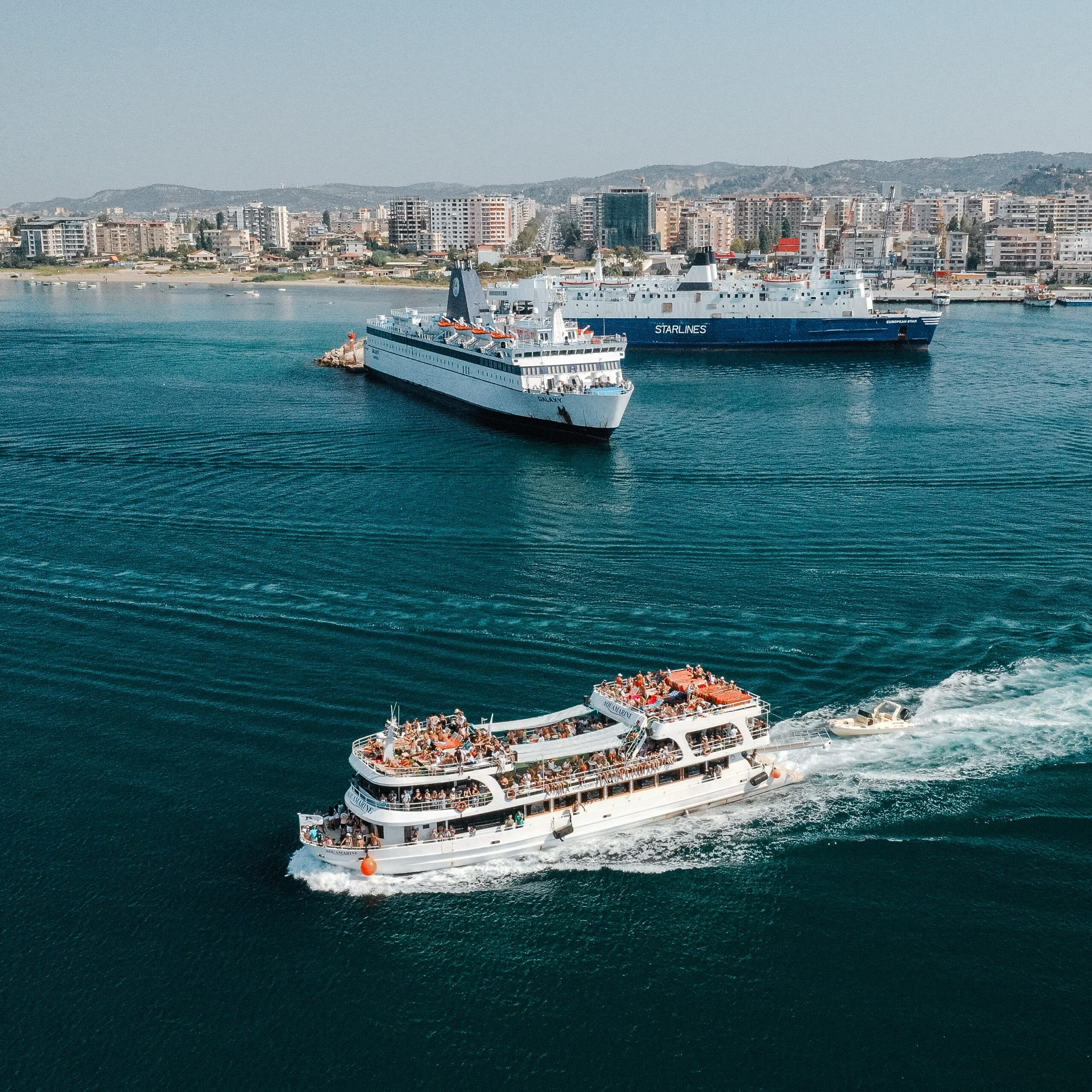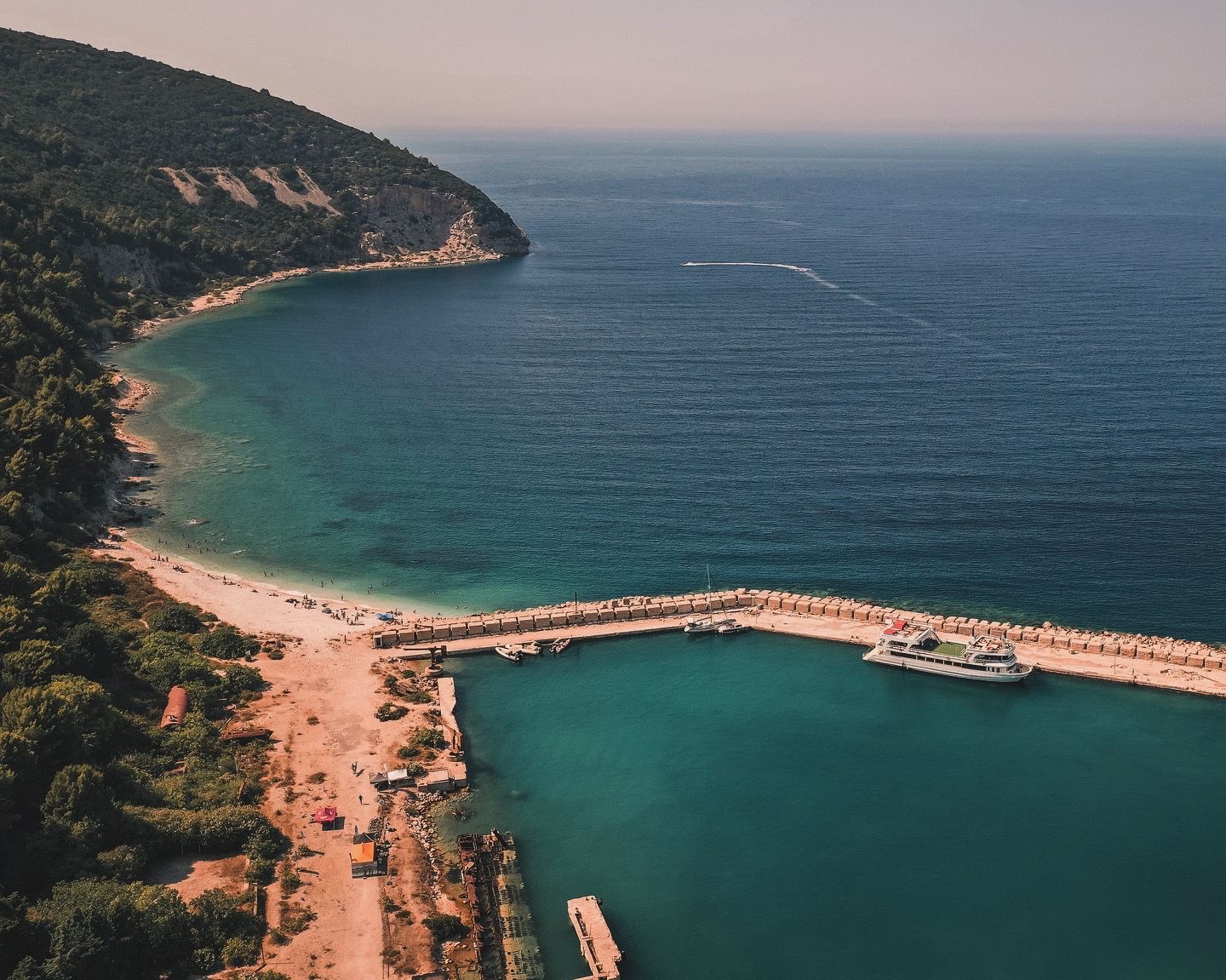 op weg naar het kristalheldere water van het schiereiland Karaburun en het eiland Sazan.